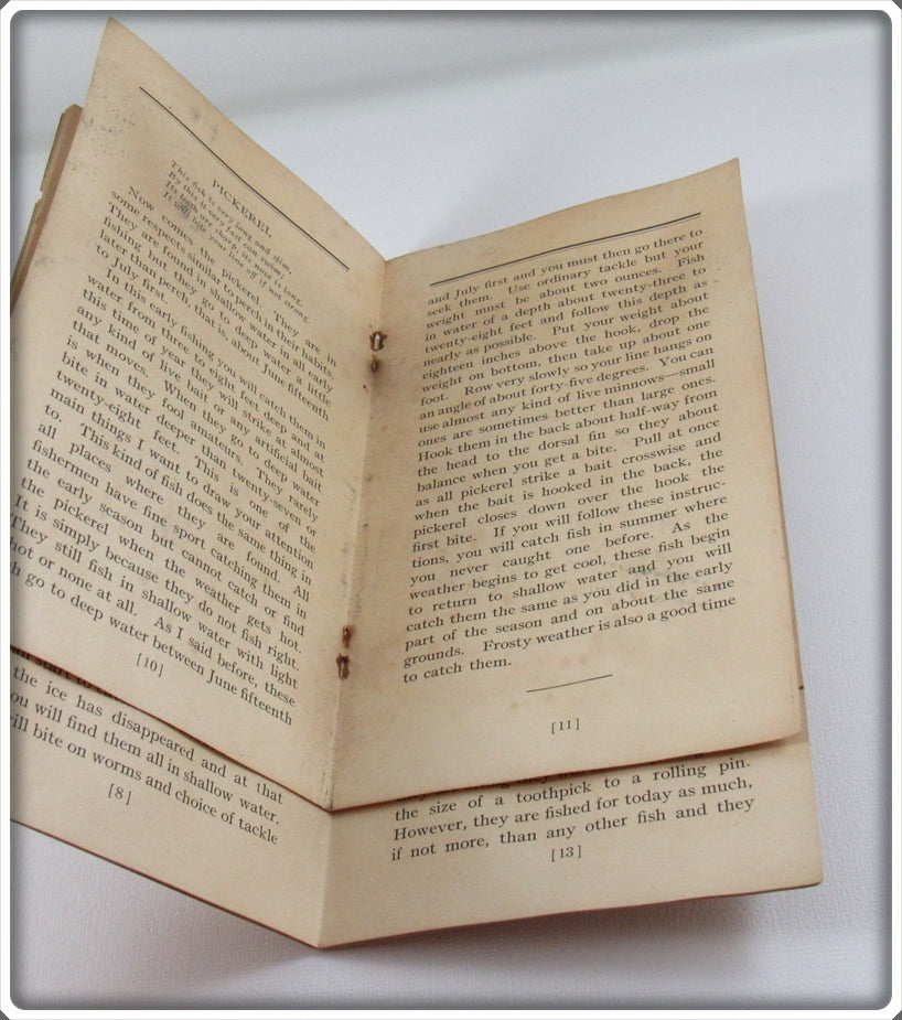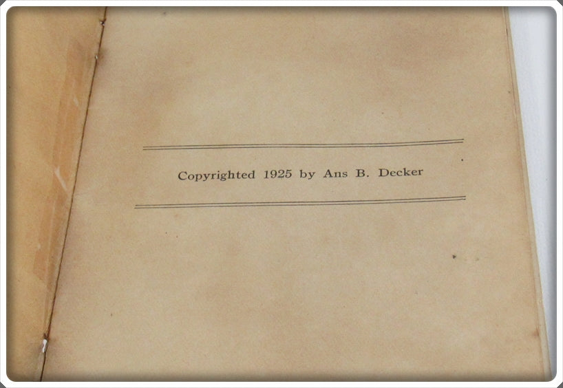 This super rare booklet is pretty nice with some expected age and use wear. A few of the center pages have come loose from the staples but they are still here. This amazing find has fishing tips and poems written by Ans B. Decker in 1925. Only a few of these booklets are known to exist so you don't want to let this pass you by!