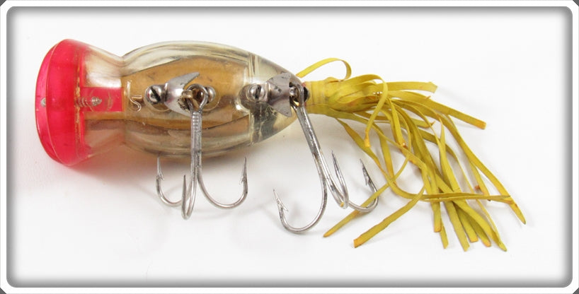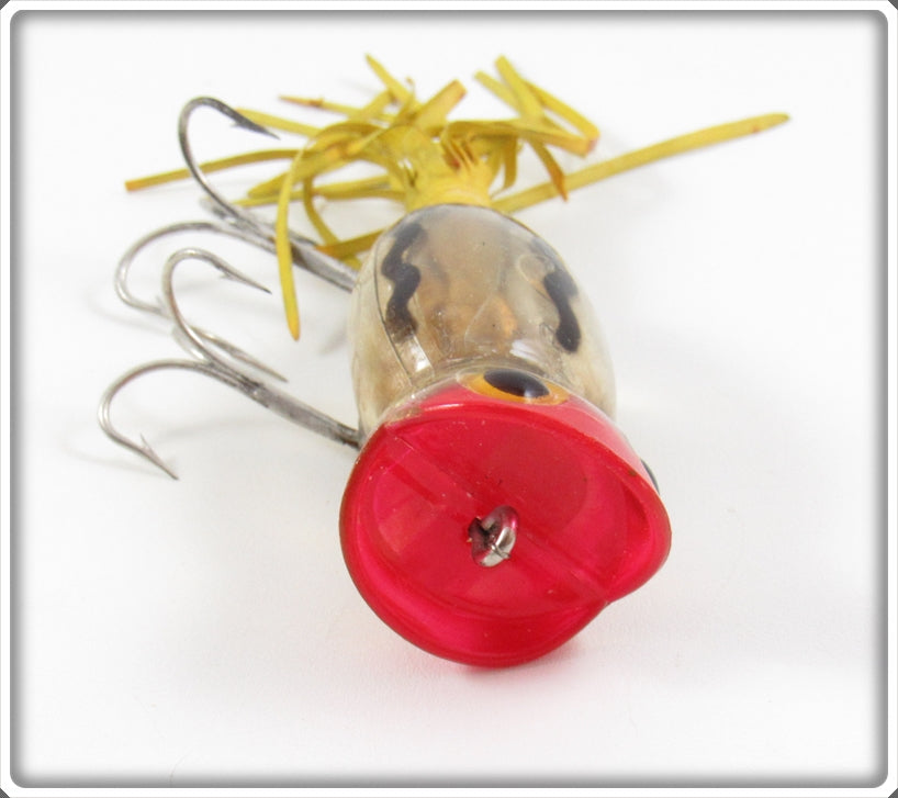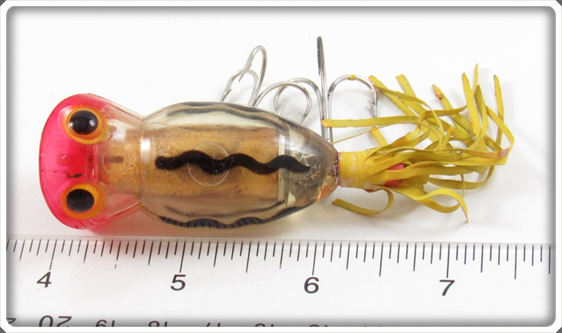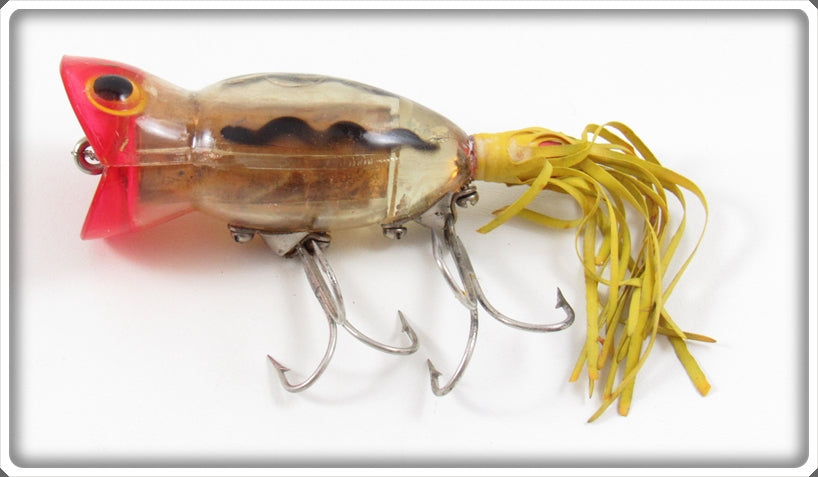 Arbogast Clear Ghost Red Head Black Snake Line 5/8 Ounce Hula Popper In Box