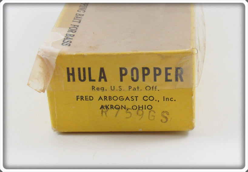 The lure is nice with light wear. The box lid has a split corner and some tape on it. The box is stamped R759GS. I am pretty sure this stands for Ghost Stripe, which this lure would match, but I might be wrong. This very desirable color is so hard to find!