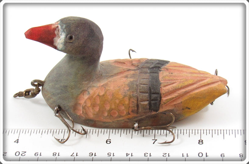The lure is very nice with light wear. I'm not sure on the age or maker but this is definitely a cool duck to put in your display!