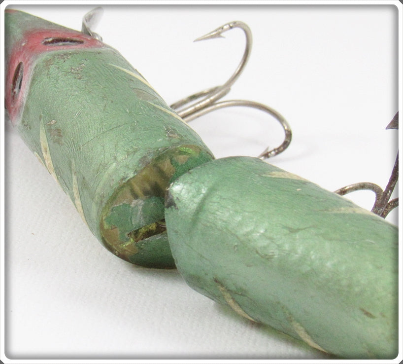 This super tough lure has some honest wear as shown but still looks neat for display. Glow Worm is one of the hardest colors to find on this early two piece hardware model!