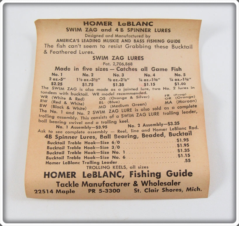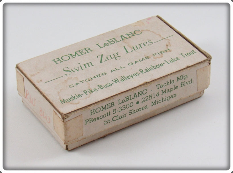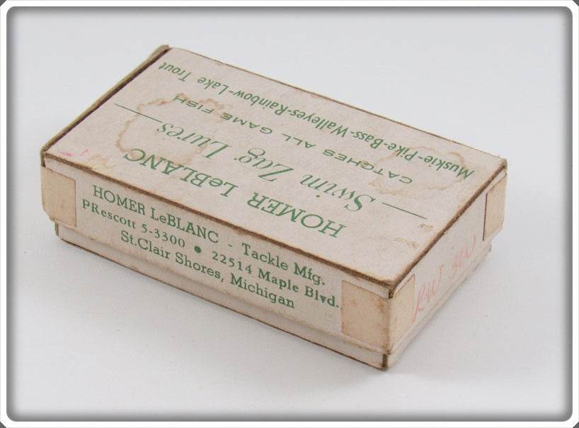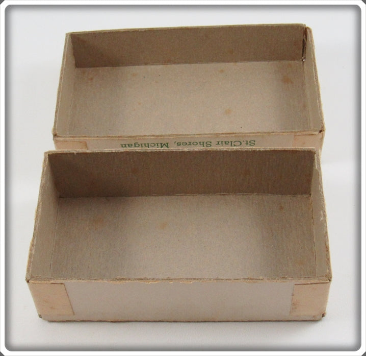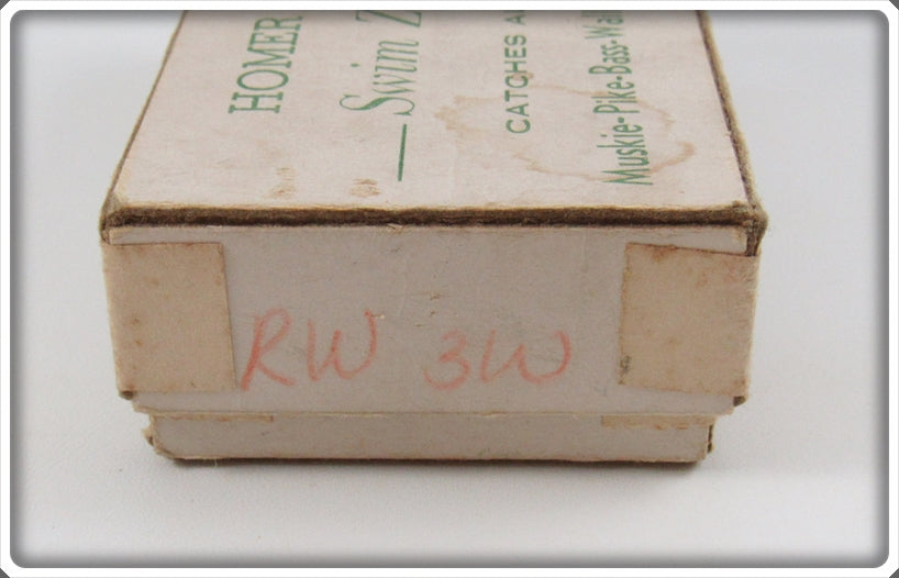 The lure is very nice and looks unused. The box is marked RW 3W, which I believe is correct. I have never seen this style of box before and it's definitely super tough! It even still has the paper insert. This is a rare Michigan made combo!