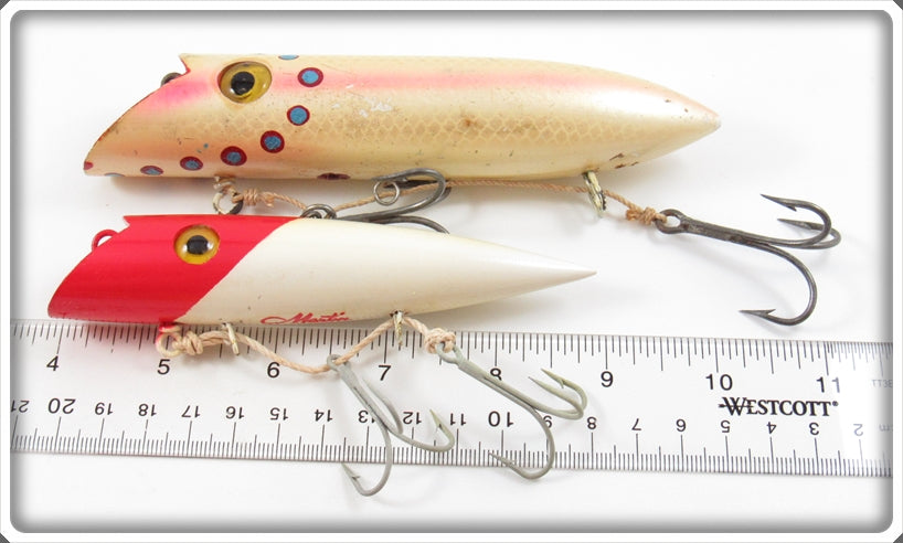 The Silver Scale Pink is nice with light wear and it has some fisherman added spots on the face and chin and a red spot on the belly. It actually looks pretty cool with the spots and is neat for display. The Red Head is nice with light wear. The price is for the pair.