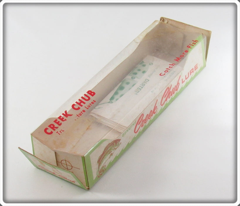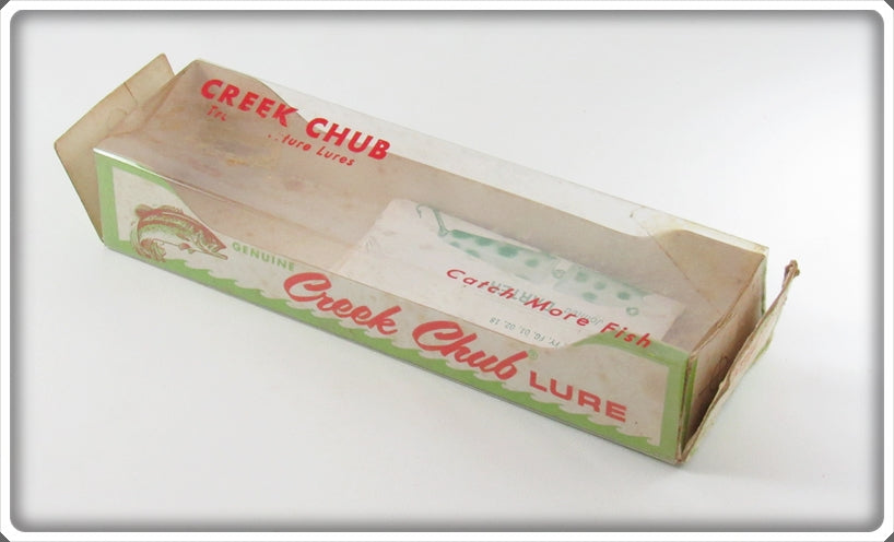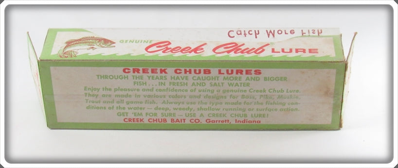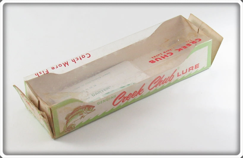 This plastic lure is very nice with light wear. The box has some wear and the only part of the stamp I can read is the P so I am calling it as unmarked. You don't see solid black very often!