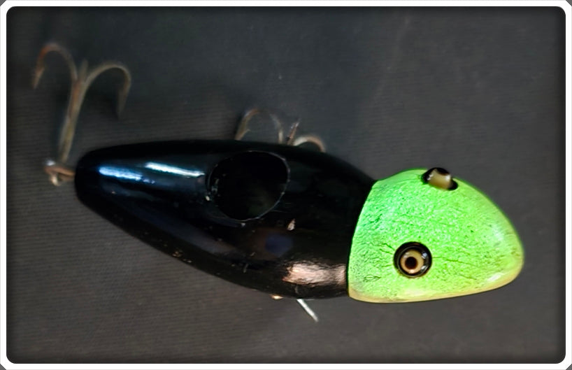 The lure is pretty nice with some normal wear and the head still glows. This uncatalogued size is already quite scarce but this color makes it even tougher!
