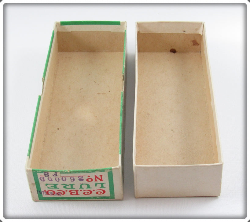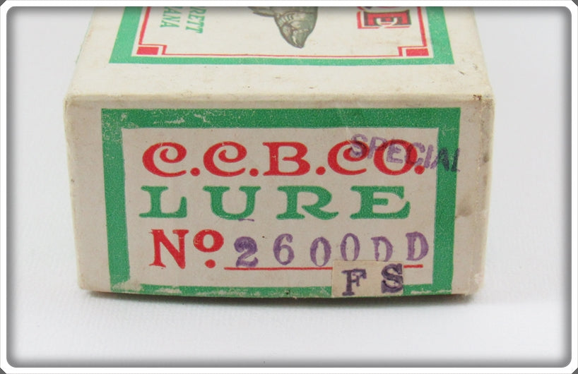 The lure is nice with light wear and a few small nicks in the joints on the belly. The box is correctly stamped Special 2600 DD FS. It is incredibly hard to find this special order color on a glass eye model!