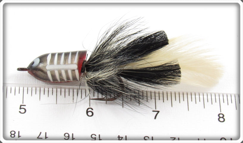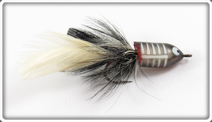 The lure is nice with light wear. The cellophane on the box is torn and coming loose but most of it is still there. The box is correctly stamped 910XBW and has the cardboard insert. This is a great combo for your fly rod lure collection!