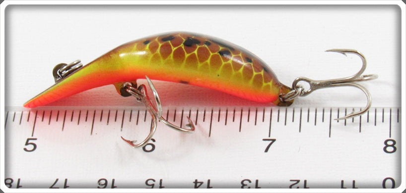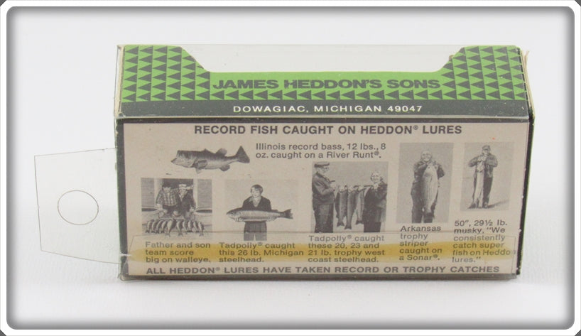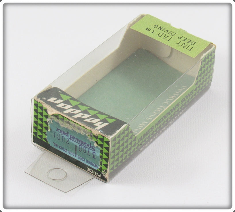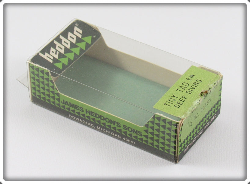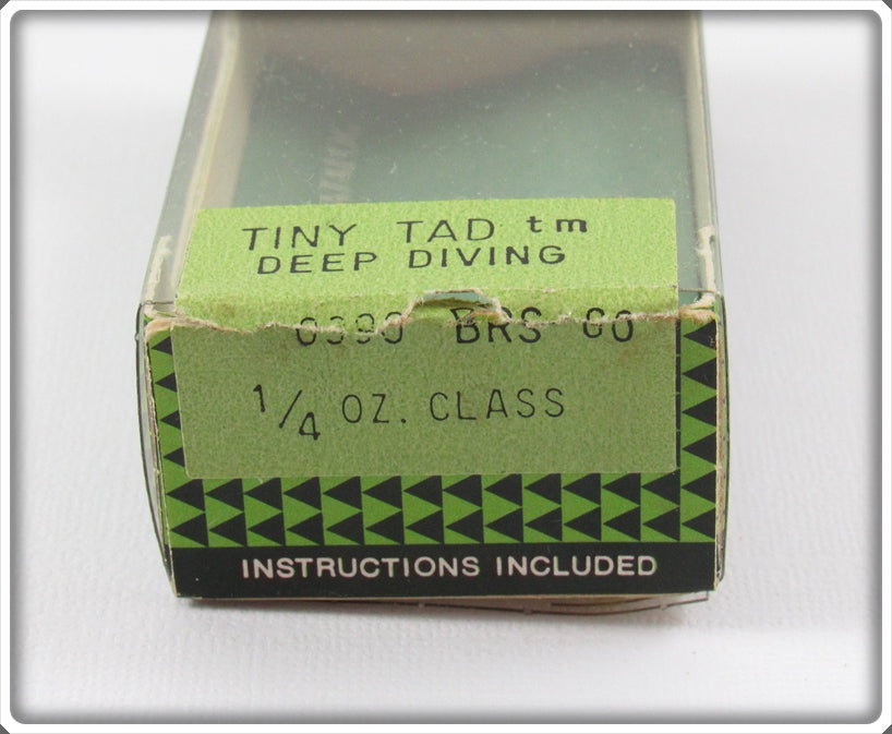The lure is very nice with light shelf wear. The box is correctly end labeled Tiny Tad 0390 BRS. This color is rarely found and will make a great addition to your Tadpolly Spook collection!