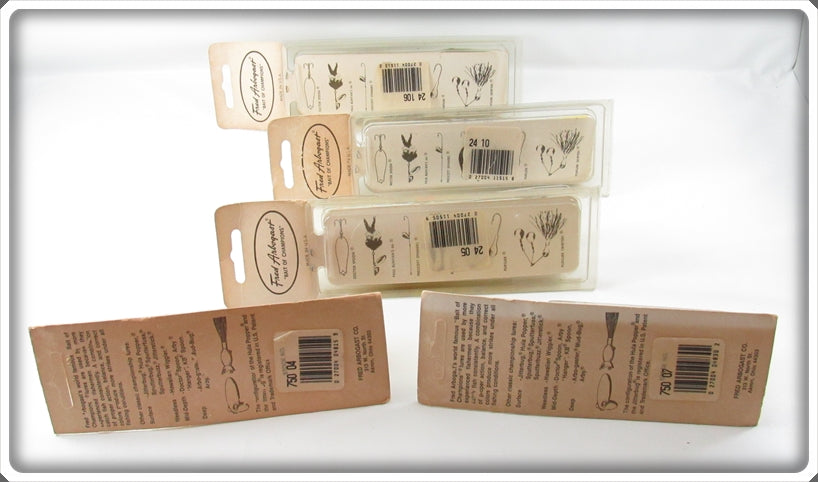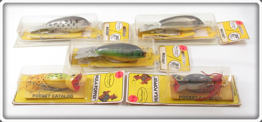 Arbogast Mud Bug & Hula Popper Lot Of Five On Cards