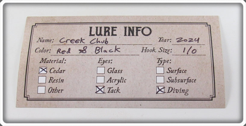 The Chautauqua Bait Co Red & Black Creek Chub In Box