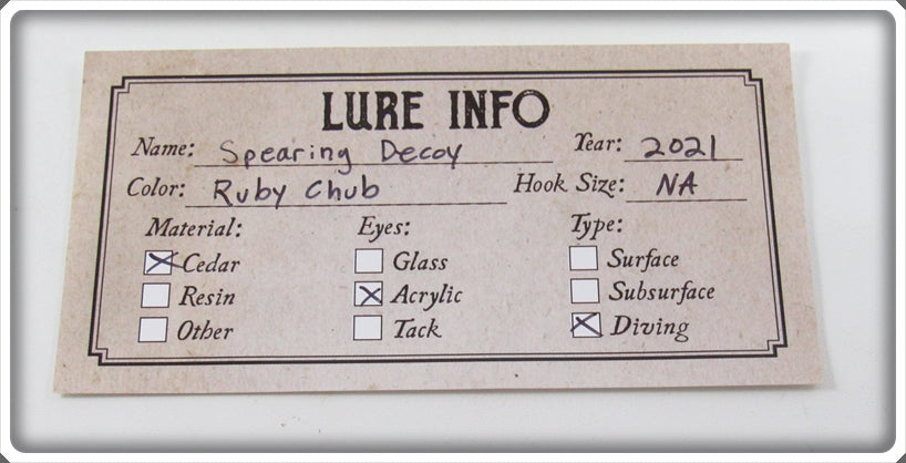 The Chautauqua Bait Co Ruby Chub Spearing Decoy In Box