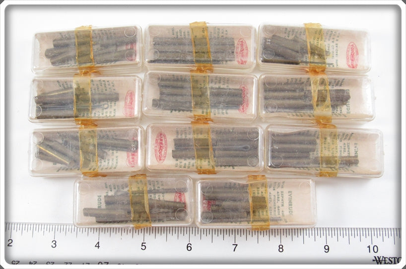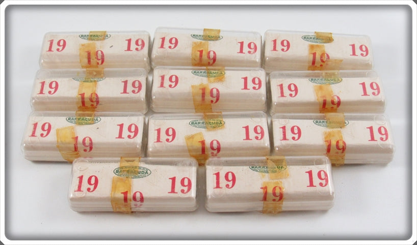 There are eleven plastic boxes of shear bins that are all unused and never removed from the boxes. This was a dealer dozen so there is one box missing. The tape is quite old so it is starting to lift off on a few of the plastic boxes. The dealer box is correctly marked No. 19 Shear Pins. This is a very unique man cave item for the lure or reel collector who thought he had everything!