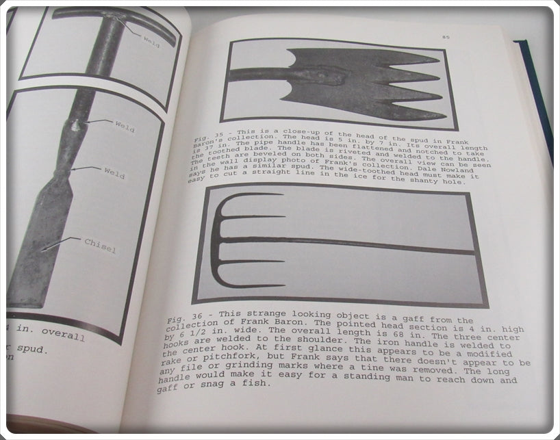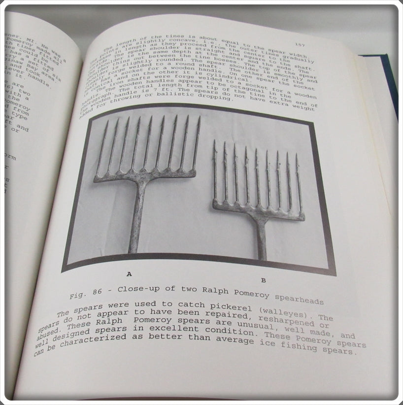 This hard cover book is nice with light wear. It has lots of black & white photos and some color photos plus lots of information about ice fishing spears. This is an amazing book you rarely get a chance to own! It can be shipped to the USA only.