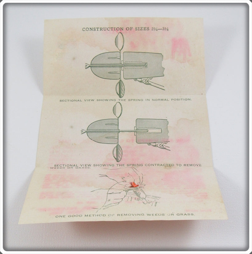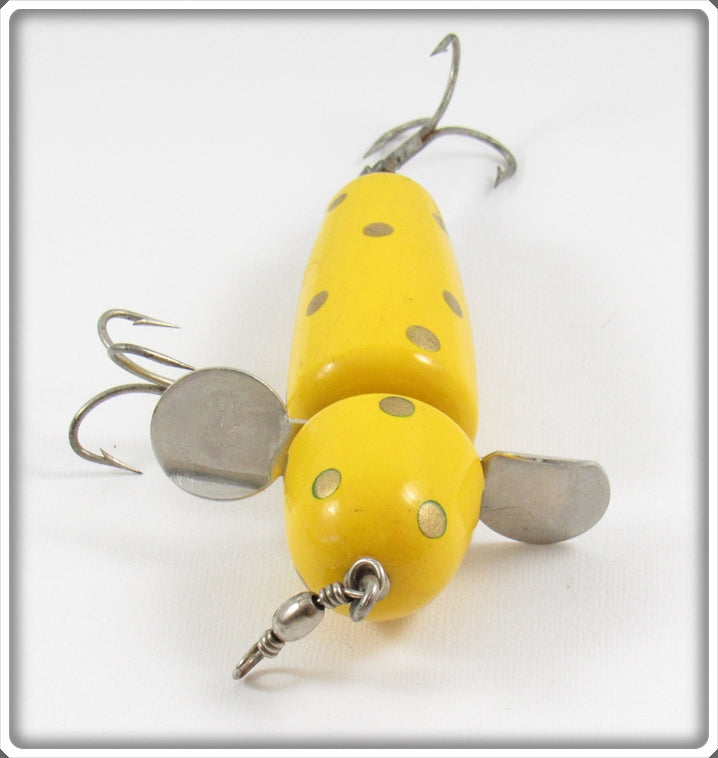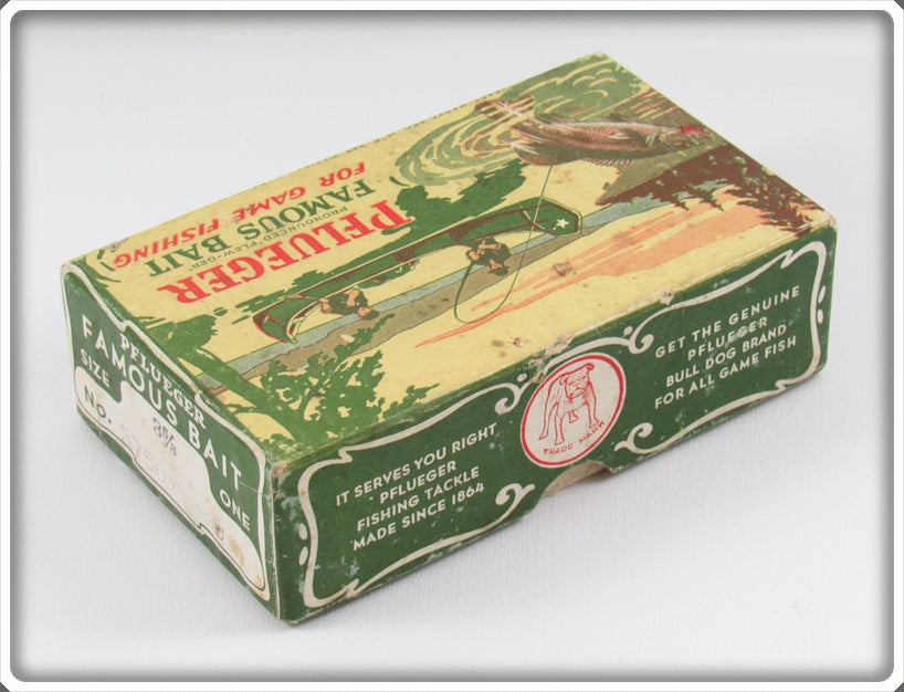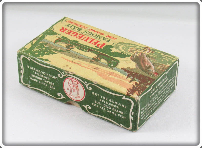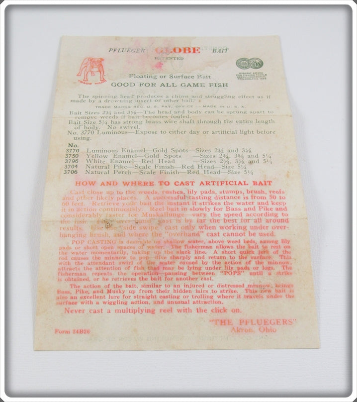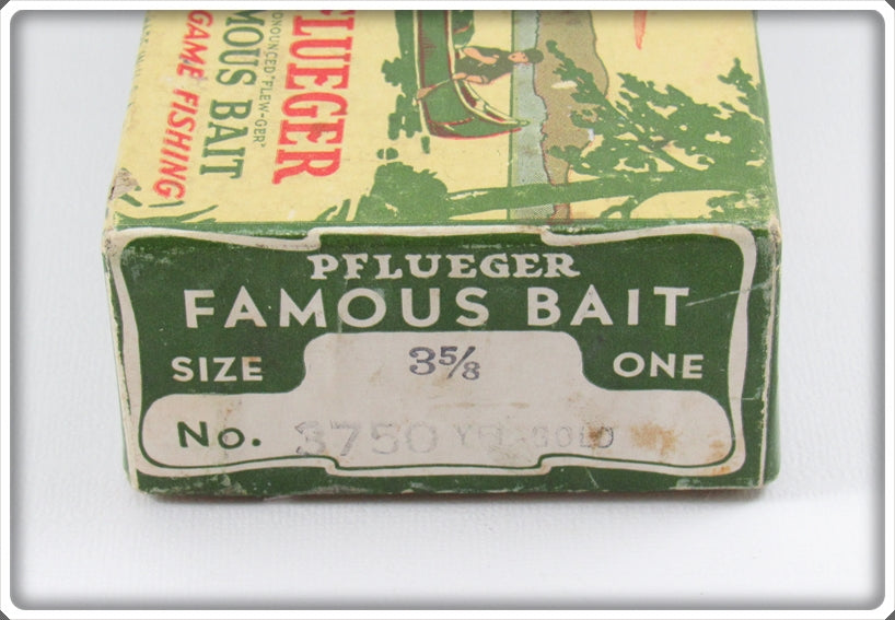 The lure is nice with light wear. The box is correctly stamped 3 5/8 3750 Yel-Gold. The paper insert has some water stains/damage but is still neat to have.