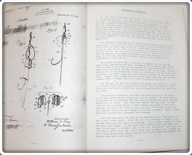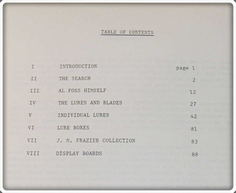 This is a nice old 1985 Al Foss Reference Book by Jim Frazier that was sold on Tough Lures. Vintage and antique fishing lures are added for sale often so keep checking back! I buy old lures so feel free to contact me if you have any to sell.
