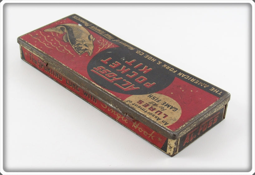 This is a nice old Al Foss Pocket Kit Tin with Shimmy & Oriental Wiggler lure that was sold on Tough Lures. Vintage and antique fishing lures are added for sale often so keep checking back! I buy old lures so feel free to contact me if you have any to sell.