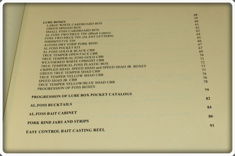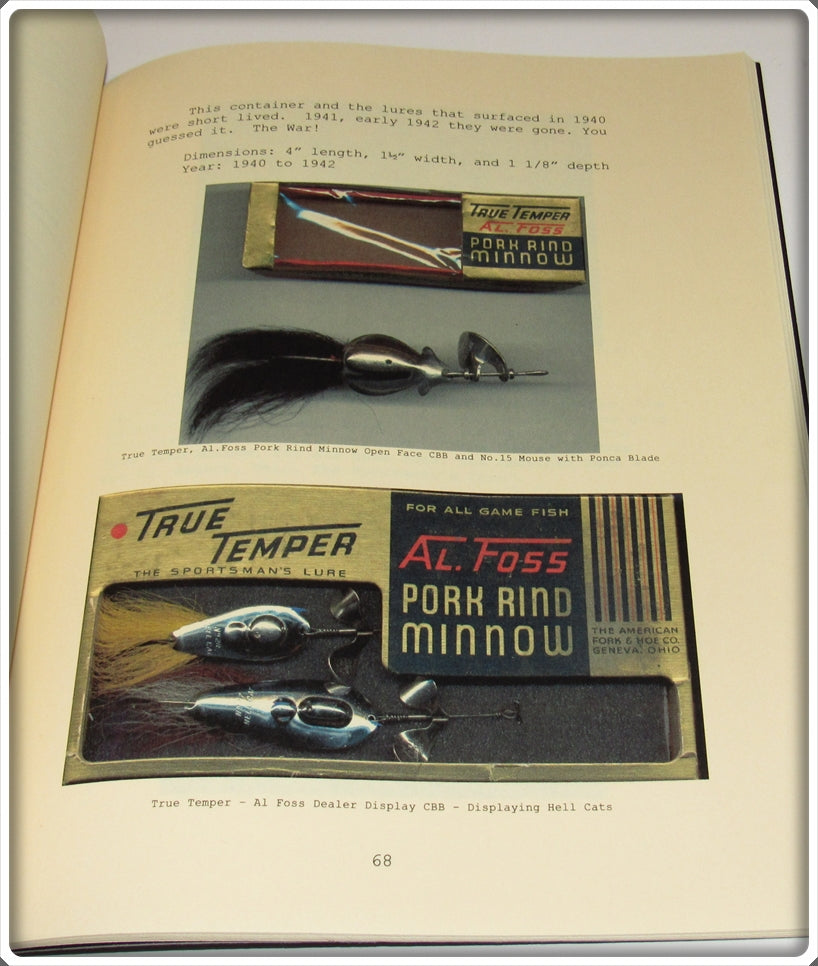 This is a nice old Al Foss Pork Rind Minnows Reference Book that was sold on Tough Lures! Vintage and antique fishing lures are added for sale often so keep checking back! I buy old lures so feel free to contact me if you have any to sell.
