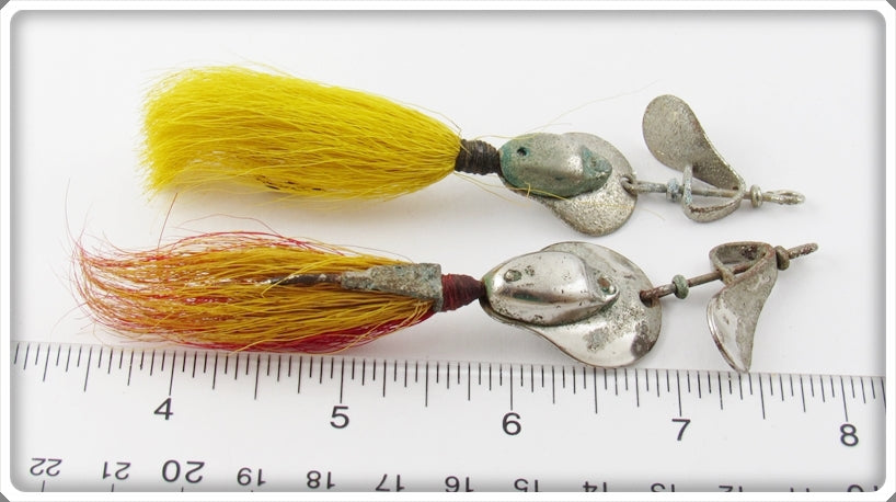 This is a nice old Al Foss Shimmy Wiggler lure pair # No 5 & 6 Special that was sold on Tough Lures! Vintage and antique fishing lures are added for sale often so keep checking back! I buy old lures so feel free to contact me if you have any to sell.