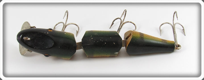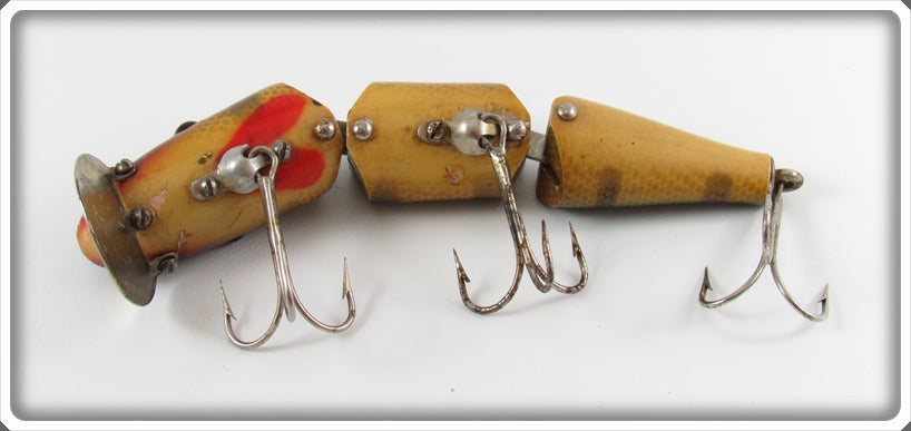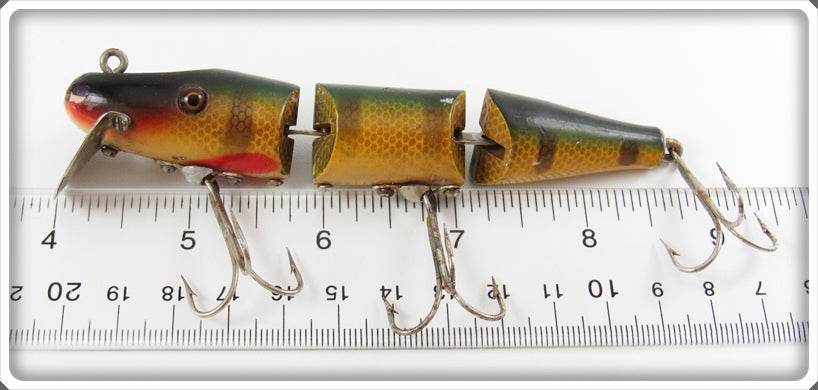 This is a nice old AL&W Perch Double Jointed Pikie lure # 388 that was sold on Tough Lures! Vintage and antique fishing lures are added for sale often so keep checking back! I buy old lures so feel free to contact me if you have any to sell.
