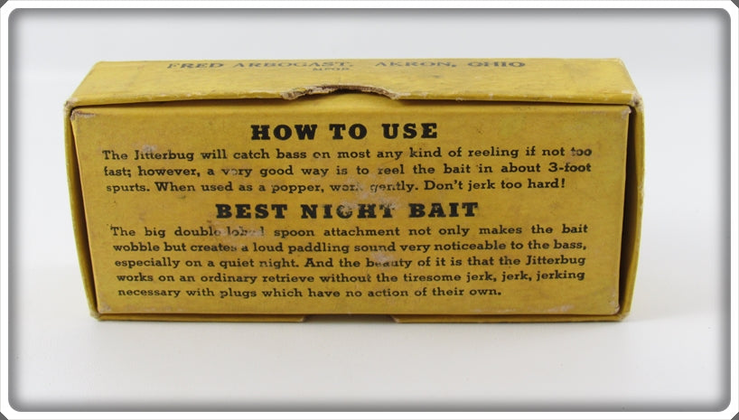 Arbogast Yellow White Belly Plastic Lip Jitterbug In Box