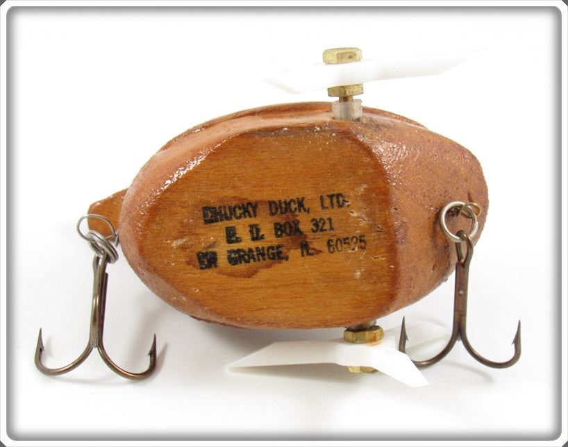 This is a nice old Chucky Duck Ltd Natural Wood Chucky Duck lure that was sold on Tough Lures! Vintage and antique fishing lures are added for sale often so keep checking back! I buy old lures so feel free to contact me if you have any to sell.