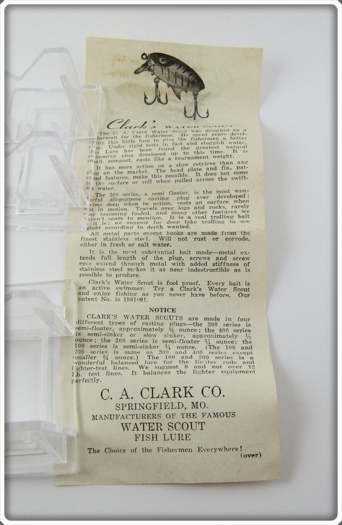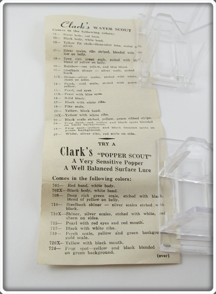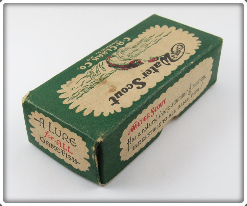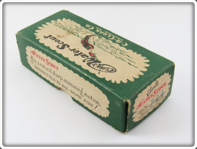 This is a nice old Clark's Frog Spot Water Scout lure box # 324 that was sold on Tough Lures! Vintage and antique fishing lures are added for sale often so keep checking back! I buy old lures so feel free to contact me if you have any to sell.