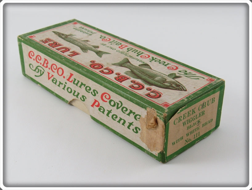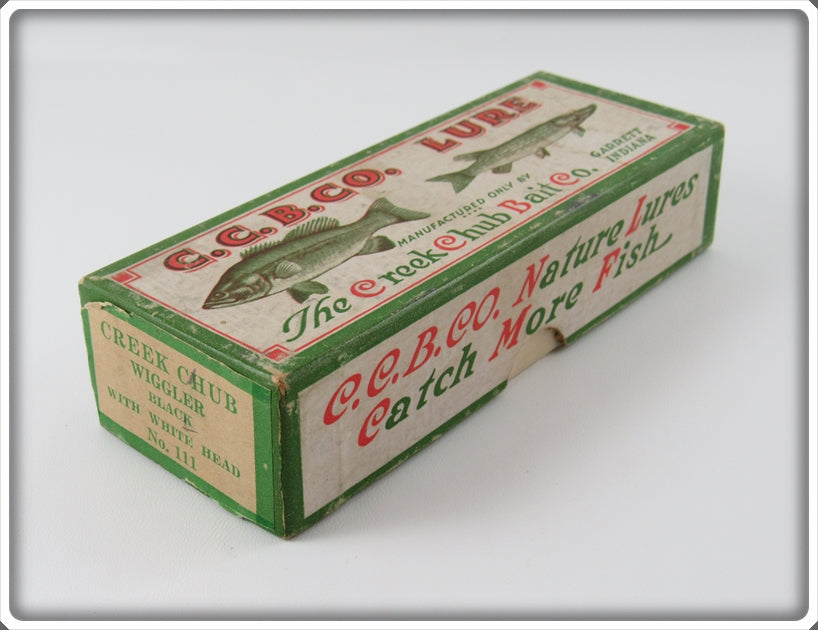 This is a nice old Creek Chub Black White Head Wiggler lure # 111 that was sold on Tough Lures! Vintage and antique fishing lures are added for sale often so keep checking back! I buy old lures so feel free to contact me if you have any to sell.