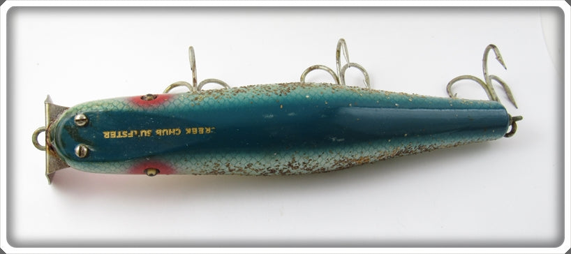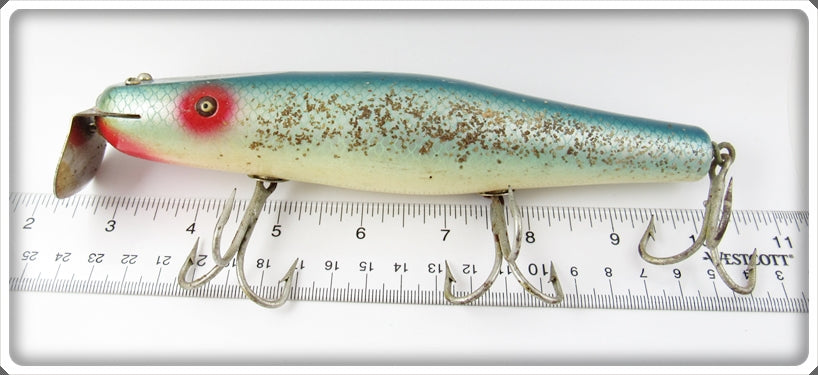 This is a nice old Creek Chub Blue Flash Saltwater Surfster lure # 7434 that was sold on Tough Lures! Vintage and antique fishing lures are added for sale often so keep checking back! I buy old lures so feel free to contact me if you have any to sell.