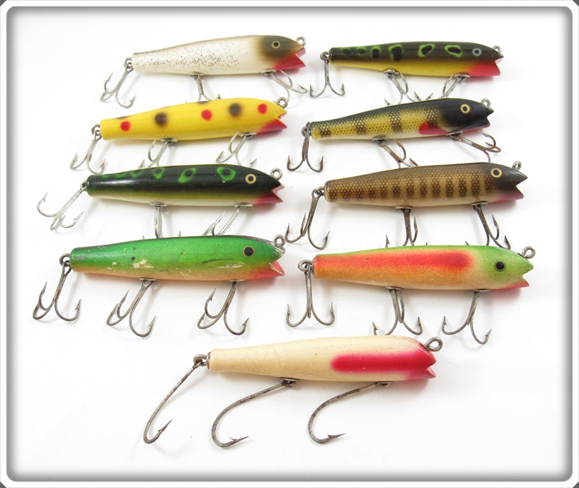 This is a nice old Creek Chub Darter Lot Of 9 that was sold on Tough Lures! Vintage and antique fishing lures are added for sale often so keep checking back! I buy old lures so feel free to contact me if you have any to sell.