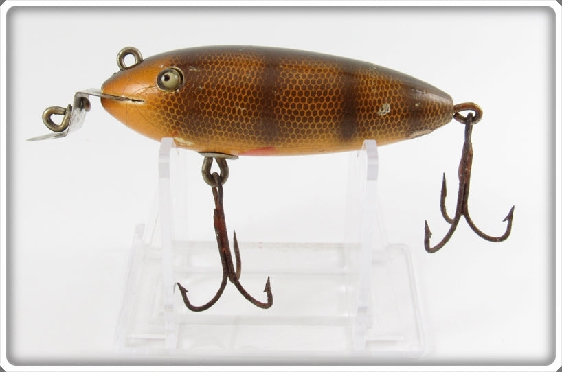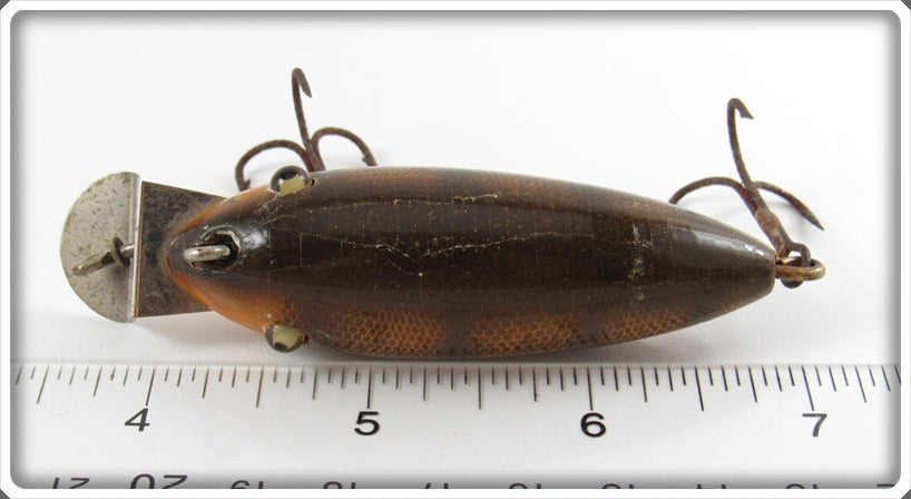 This is a nice old Creek Chub Perch Intro Baby Wiggler lure # 201 that was sold on Tough Lures! Vintage and antique fishing lures are added for sale often so keep checking back! I buy old lures so feel free to contact me if you have any to sell.