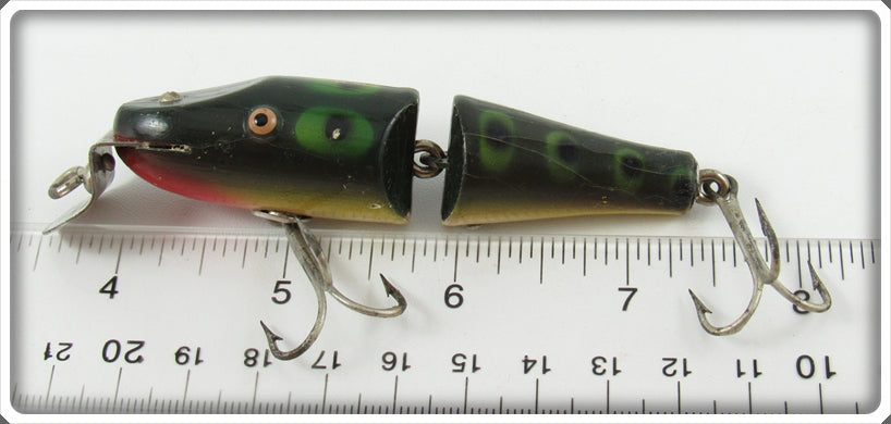 This is a nice old Creek Chub Frog Baby Jointed Pikie lure # 2719 that was sold on Tough Lures! Vintage and antique fishing lures are added for sale often so keep checking back! I buy old lures so feel free to contact me if you have any to sell.