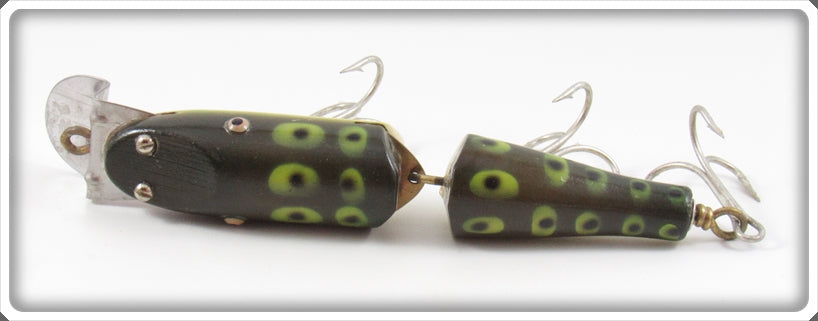This is a nice old Creek Chub Frog Spot Jointed Snook Pikie 5519 lure that was sold on Tough Lures! Vintage and antique fishing lures are added for sale often so keep checking back! I buy old lures so feel free to contact me if you have any to sell.