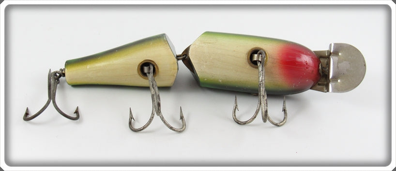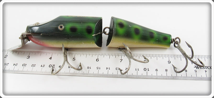 This is a nice old Creek Chub Frog Spot Jointed Striper Pikie lure # 6819 that was sold on Tough Lures! Vintage and antique fishing lures are added for sale often so keep checking back! I buy old lures so feel free to contact me if you have any to sell.