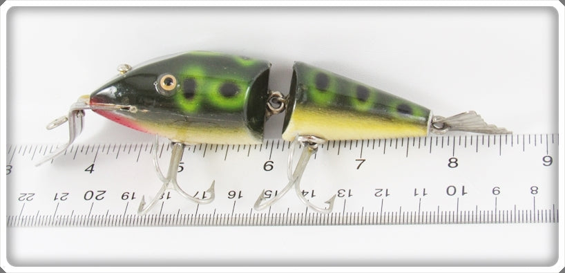 This is a nice old Creek Chub Frog Spot Wigglefish lure # 2419 that was sold on Tough Lures! Vintage and antique fishing lures are added for sale often so keep checking back! I buy old lures so feel free to contact me if you have any to sell.