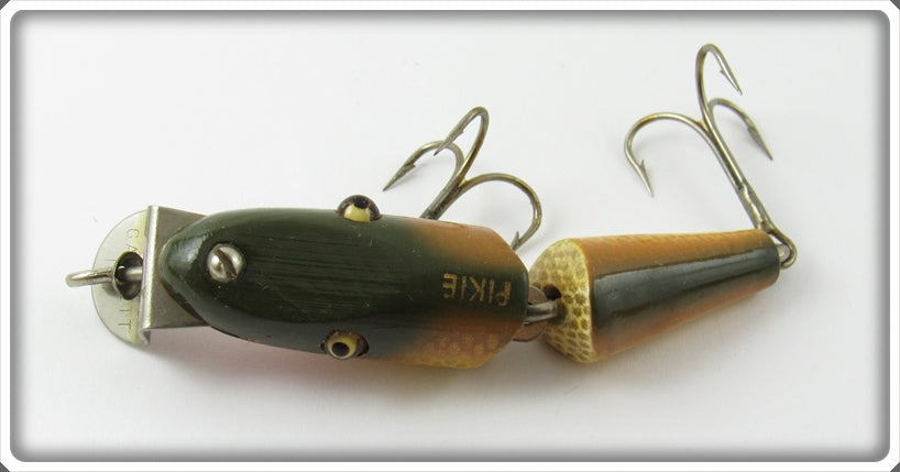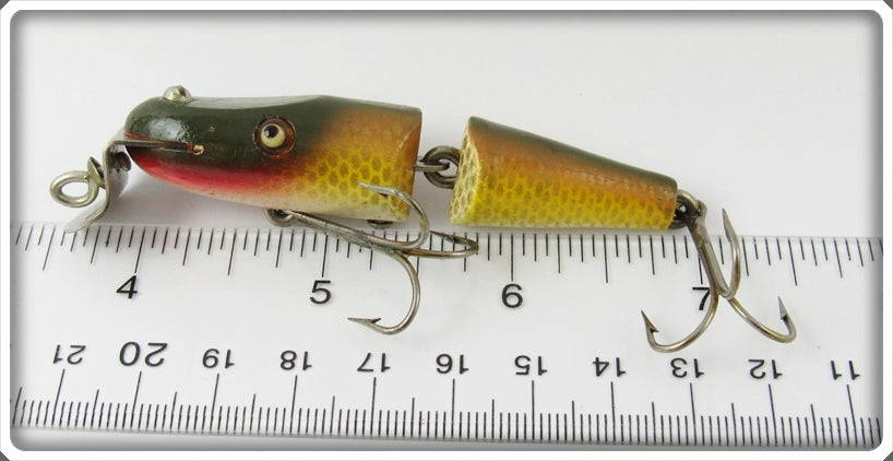 This is a nice old Creek Chub Golden Shiner Jointed Midget Pikie lure # 4202 that was sold on Tough Lures! Vintage and antique fishing lures are added for sale often so keep checking back! I buy old lures so feel free to contact me if you have any to sell.