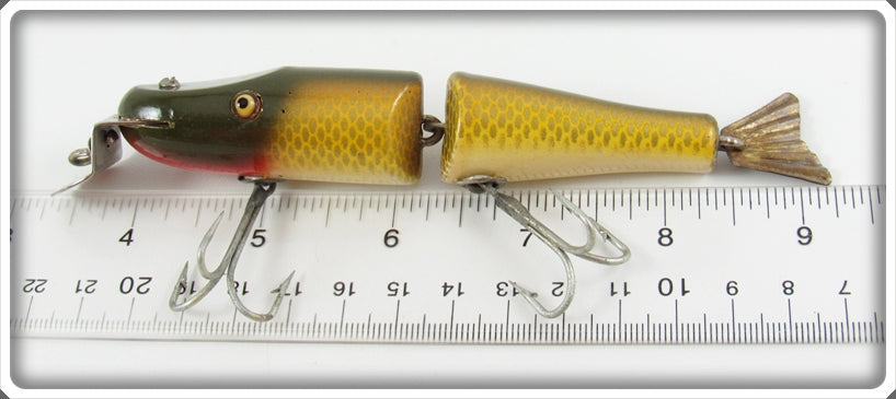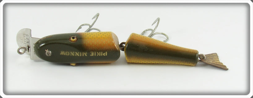 This is a nice old Creek Chub Golden Shiner Tailed Jointed Pikie lure # 2604 Special that was sold on Tough Lures! Vintage and antique fishing lures are added for sale often so keep checking back! I buy old lures so feel free to contact me if you have any to sell.
