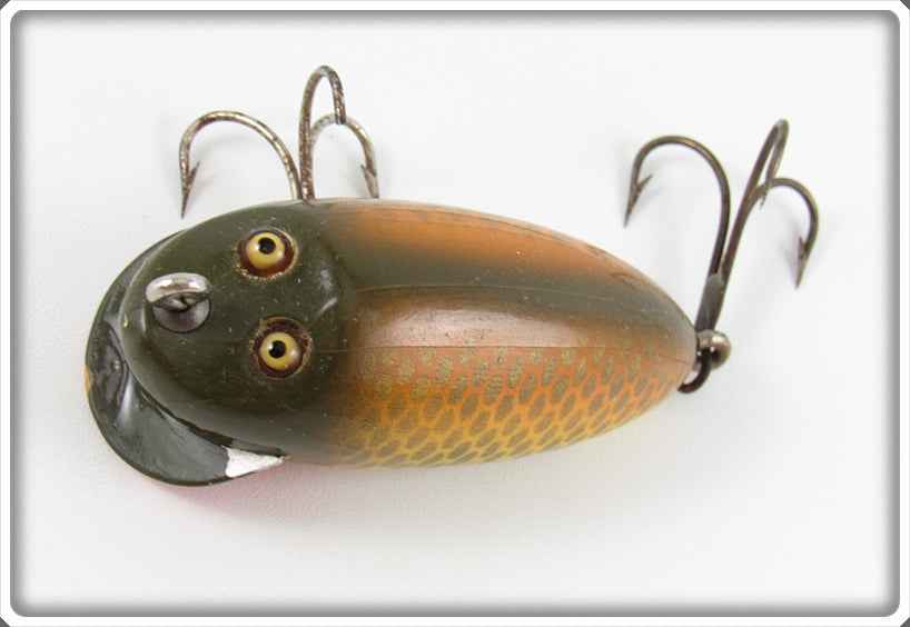 This is a nice old Creek Chub Golden Shiner River Rustler lure # 3704 that was sold on Tough Lures! Vintage and antique fishing lures are added for sale often so keep checking back! I buy old lures so feel free to contact me if you have any to sell.