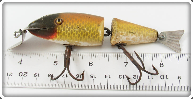 This is a nice old Creek Chub Golden Shiner Wigglefish lure # 2404 that was sold on Tough Lures! Vintage and antique fishing lures are added for sale often so keep checking back! I buy old lures so feel free to contact me if you have any to sell.