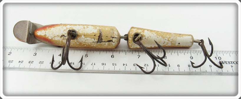 This is a nice old Creek Chub Goldfish Thin Body Jointed Husky Pikie lure # 3006 Special that was sold on Tough Lures! Vintage and antique fishing lures are added for sale often so keep checking back! I buy old lures so feel free to contact me if you have any to sell.