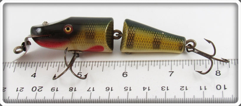 This is a nice old Creek Chub Natural Perch Baby Jointed Pikie lure # 2701 that was sold on Tough Lures! Vintage and antique fishing lures are added for sale often so keep checking back! I buy old lures so feel free to contact me if you have any to sell.