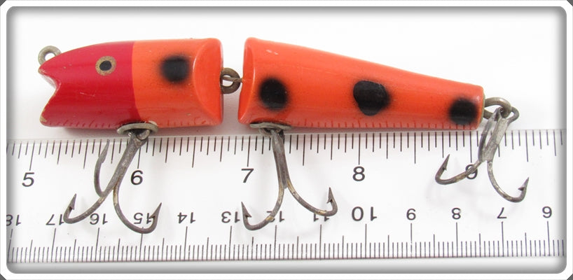 This is a nice old Creek Chub Orange Spotted Jointed Darter 4930 Special lure that was sold on Tough Lures! Vintage and antique fishing lures are added for sale often so keep checking back! I buy old lures so feel free to contact me if you have any to sell.