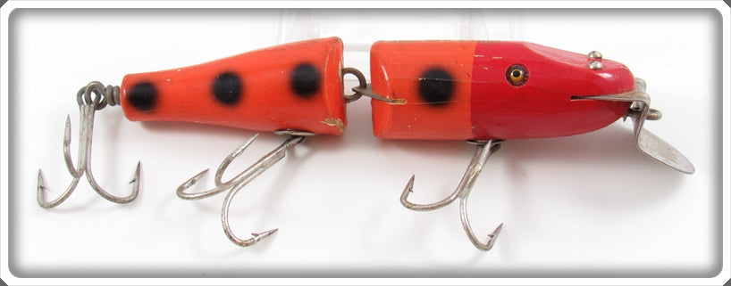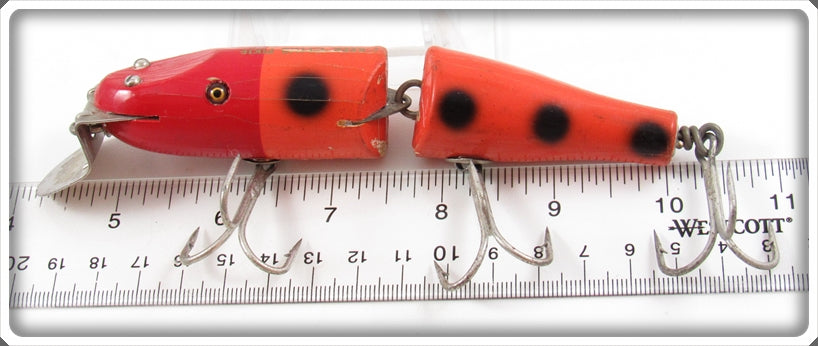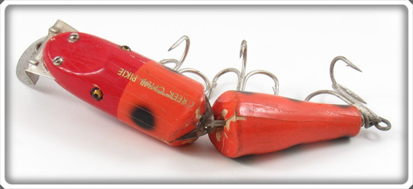 This is a nice old Creek Chub Orange Spotted Jointed Snook Pikie 5530 lure that was sold on Tough Lures! Vintage and antique fishing lures are added for sale often so keep checking back! I buy old lures so feel free to contact me if you have any to sell.