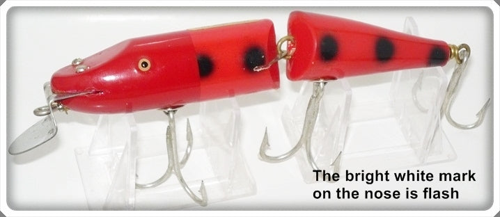 This is a nice old Creek Chub Orange Spotted Red Head 3000 Jointed Husky Pikie lure # 3030 that was sold on Tough Lures! Vintage and antique fishing lures are added for sale often so keep checking back! I buy old lures so feel free to contact me if you have any to sell.