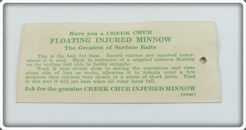 This is a nice old Creek Chub Perch Finish Baby Flatside Injured Minnow lure # 1601 that was sold on Tough Lures! Vintage and antique fishing lures are added for sale often so keep checking back! I buy old lures so feel free to contact me if you have any to sell.