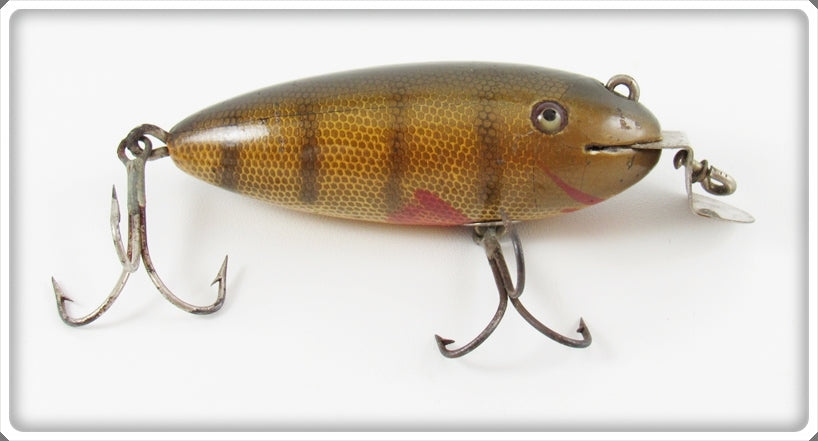 This is a nice old Creek Chub Perch Early Baby Wiggler lure # 201 that was sold on Tough Lures. Vintage and antique fishing lures are added for sale often so keep checking back! I buy old lures so feel free to contact me if you have any to sell.