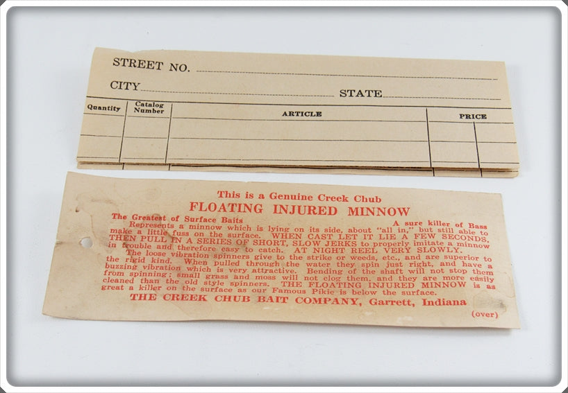 This is a nice old Creek Chub Perch Injured Minnow lure # 1501 that was sold on Tough Lures! Vintage and antique fishing lures are added for sale often so keep checking back! I buy old lures so feel free to contact me if you have any to sell.
