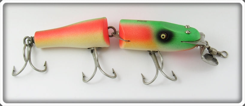 This is a nice old Creek Chub Rainbow Fire Plug, Fire Lacquer Jointed Snook Pikie lure # 5531 that was sold on Tough Lures! Vintage and antique fishing lures are added for sale often so keep checking back! I buy old lures so feel free to contact me if you have any to sell.