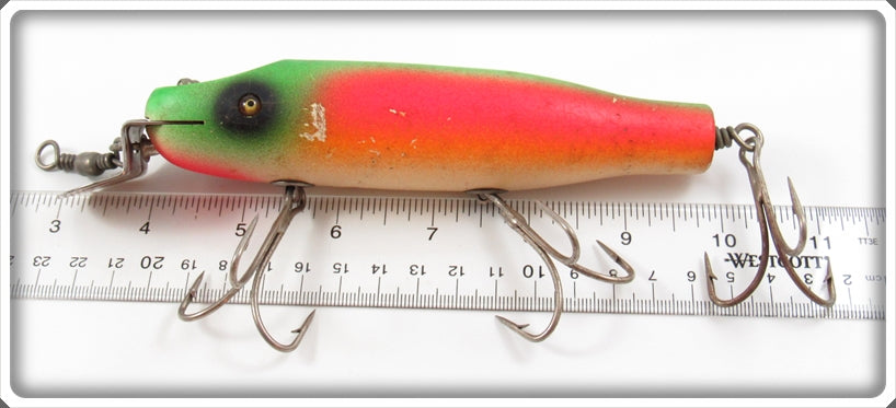This is a nice old Creek Chub Rainbow Fire Striper Pikie 6931 lure that was sold on Tough Lures! Vintage and antique fishing lures are added for sale often so keep checking back! I buy old lures so feel free to contact me if you have any to sell.