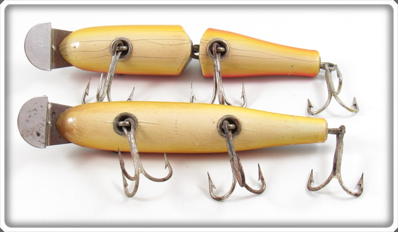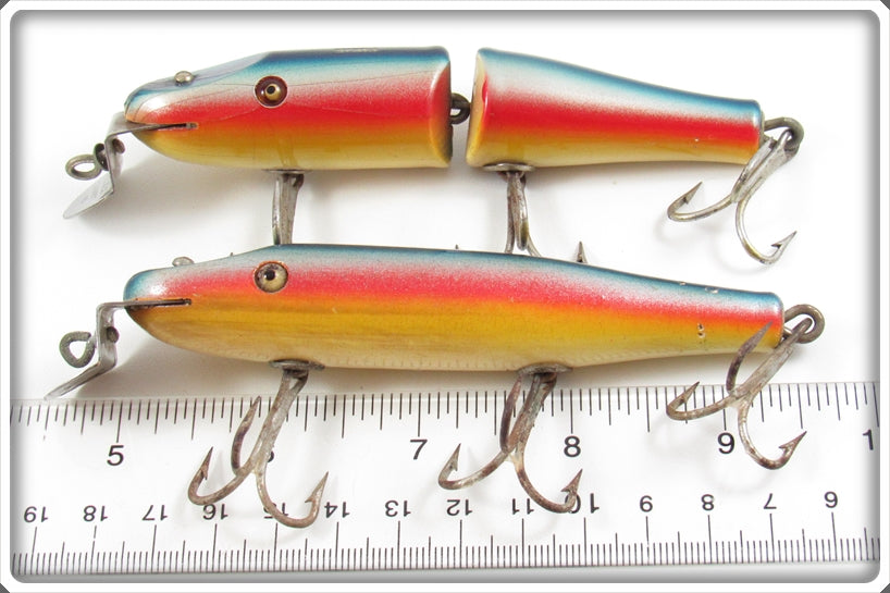 This is a nice old Creek Chub Rainbow Pikie & Jointed Pikie Pair that was sold on Tough Lures! Vintage and antique fishing lures are added for sale often so keep checking back! I buy old lures so feel free to contact me if you have any to sell.