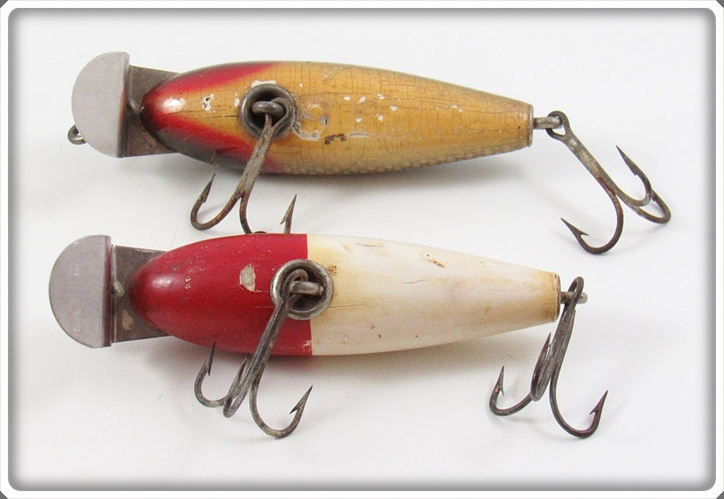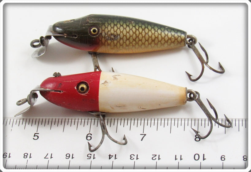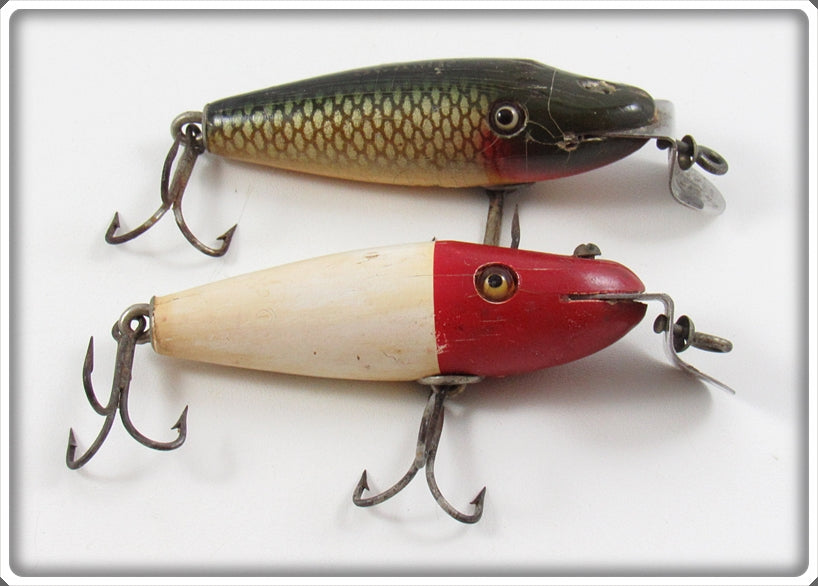 This is a nice old Creek Chub Red Head White & Chub River Scamp Pair that was sold on Tough Lures! Vintage and antique fishing lures are added for sale often so keep checking back! I buy old lures so feel free to contact me if you have any to sell.